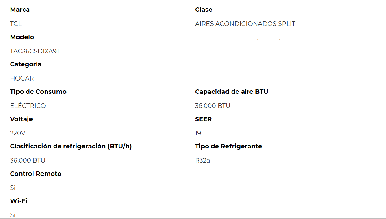 Aire Acondcionado Split de 36,000 BTU TCL | Inverter | Wi-Fi | R32a | SEER 19 220V / COIL DE COBRE